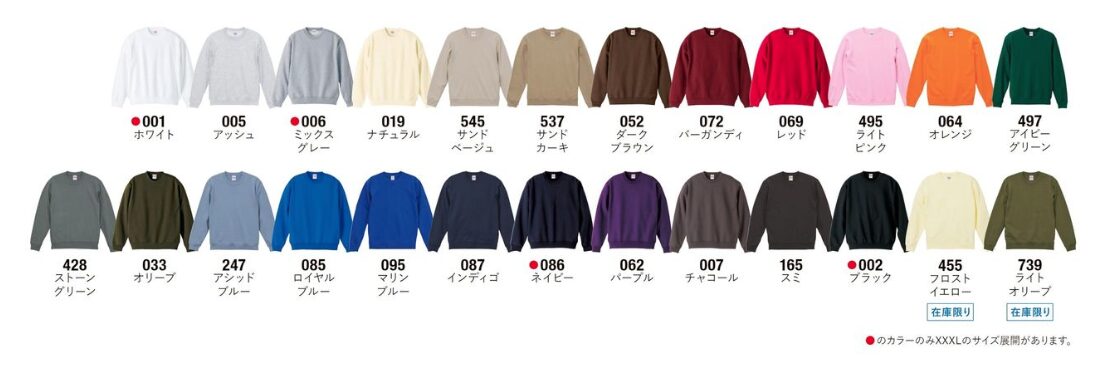 ※XXL,XXXLは+300円かかります。 アッシュは+500円かかります。