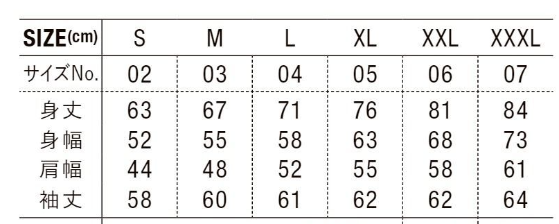 | 肩幅 | 44 | 48 | 52 | 55 | 58 | 61 |